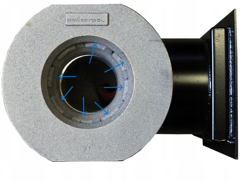 - podajnik Pancerpol w stalowej obudowie z żeliwnym stałym paleniskiem