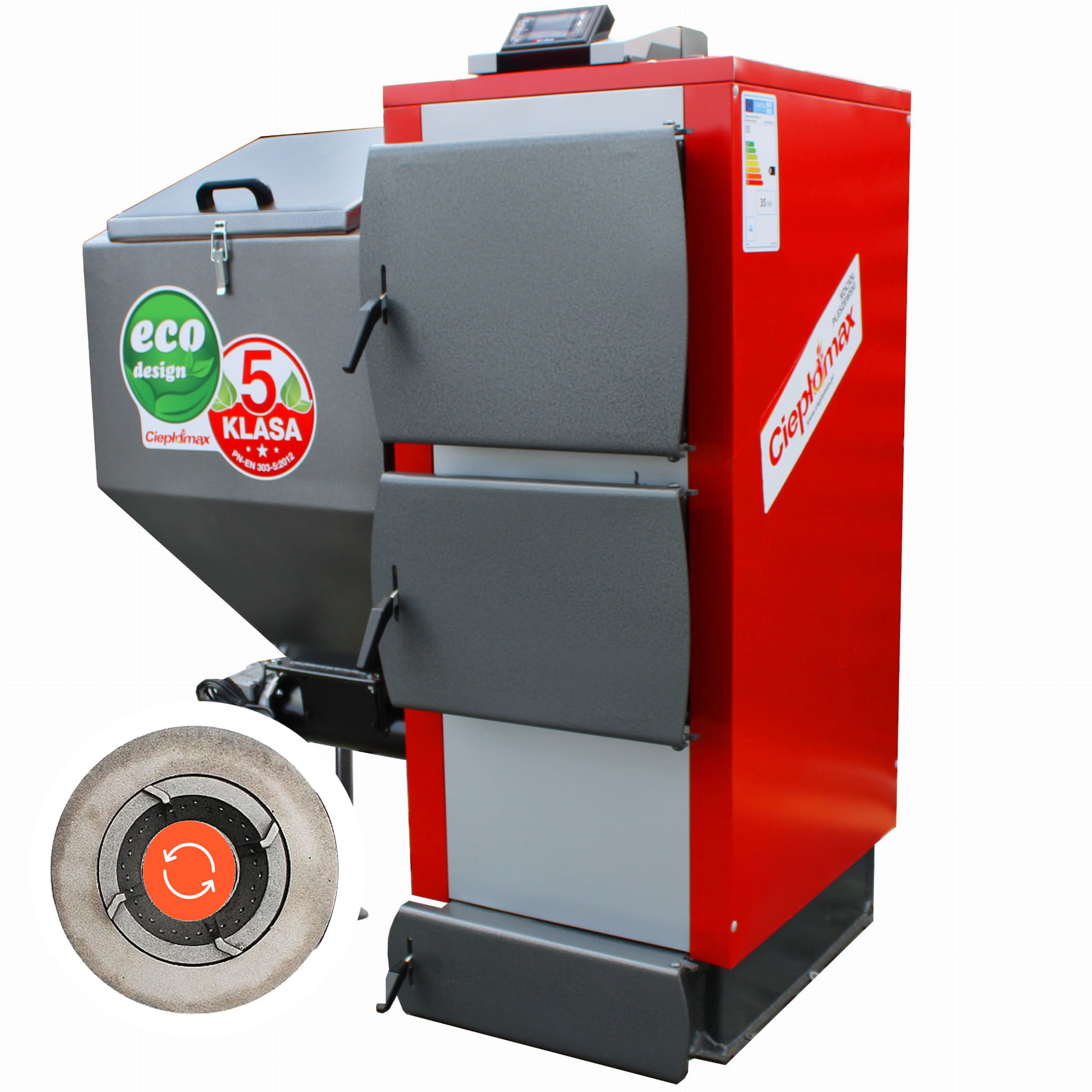 Kocioł 25kW do 220 m² piec C.O. na ekogroszek z podajnikiem KG-ECO RED Premium 5 klasa / Ecodesign Producent Kotły Ciepłomax Pleszew OBROTOWA RETORTA