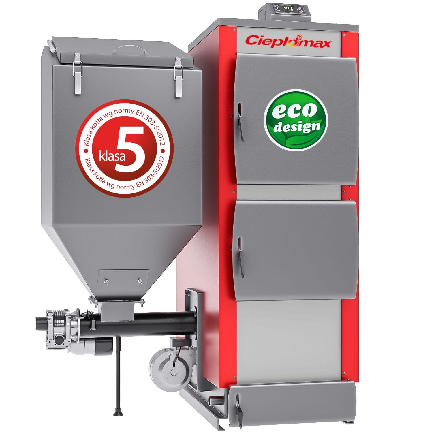 Kocioł 30kW do 280 m² piec C.O. na ekogroszek z podajnikiem KGŻ 5 klasa / Ecodesign - żeliwny ślimak, podajnik Ciepłomax Pleszew