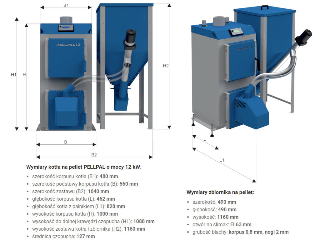 Kocioł PellPal o mocy 12 kW przeznaczony jest do ogrzewania pomieszczeń o powierzchni do 150 m2 a także podgrzewania wody w układach ciepłej wody użytkowej. Przeznaczony jest do spalania biopaliwa - pelletu drzewnego o średnicy od 6 do 8 mm.