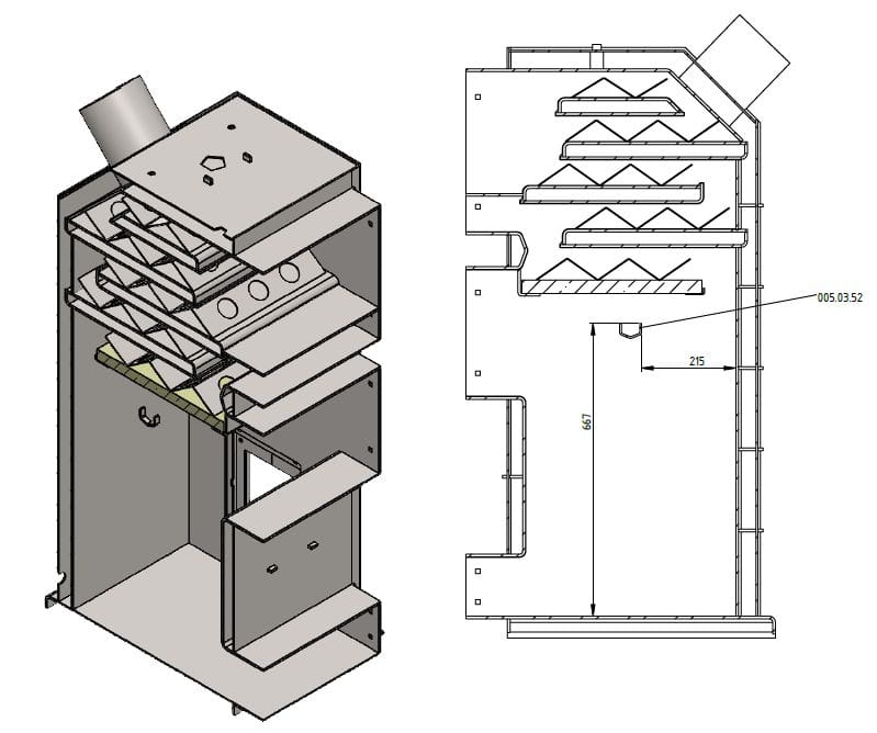 - podajnik Pancerpol w stalowej obudowie z żeliwnym stałym paleniskiem
